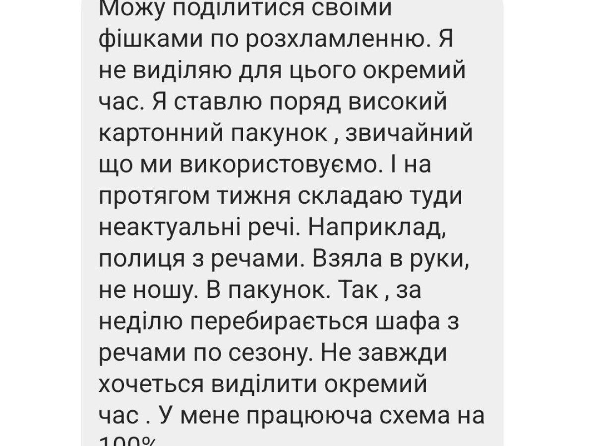 - Це не провокує вас на емоції “йой шкода”: бо просто у потоці життя ви БАЧИТЕ, що ці речі не потрібні.