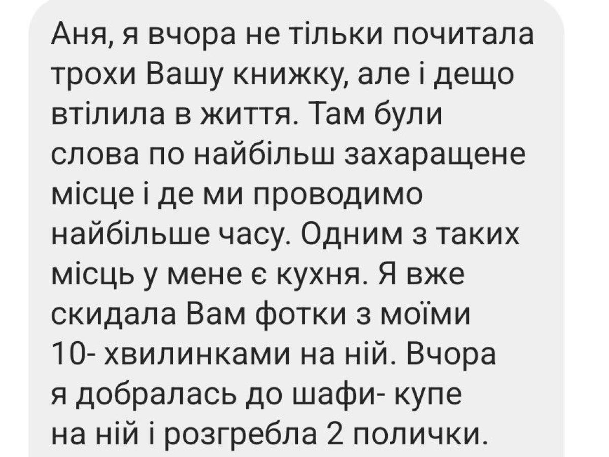 - Пройдете кожне приміщення, кожну шафу, кожну шухляду... і залишите там лише лад, зручність, інтуїтивно зрозумілу організацію.