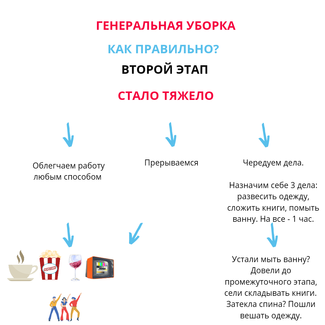 Он наступает тогда, когда вы ощущаете первую усталость. Это не конец уборки, это лишь ее этап, и он совершенно нормален! Только тут нужно действовать правильно, если вы не хотите все забросить.