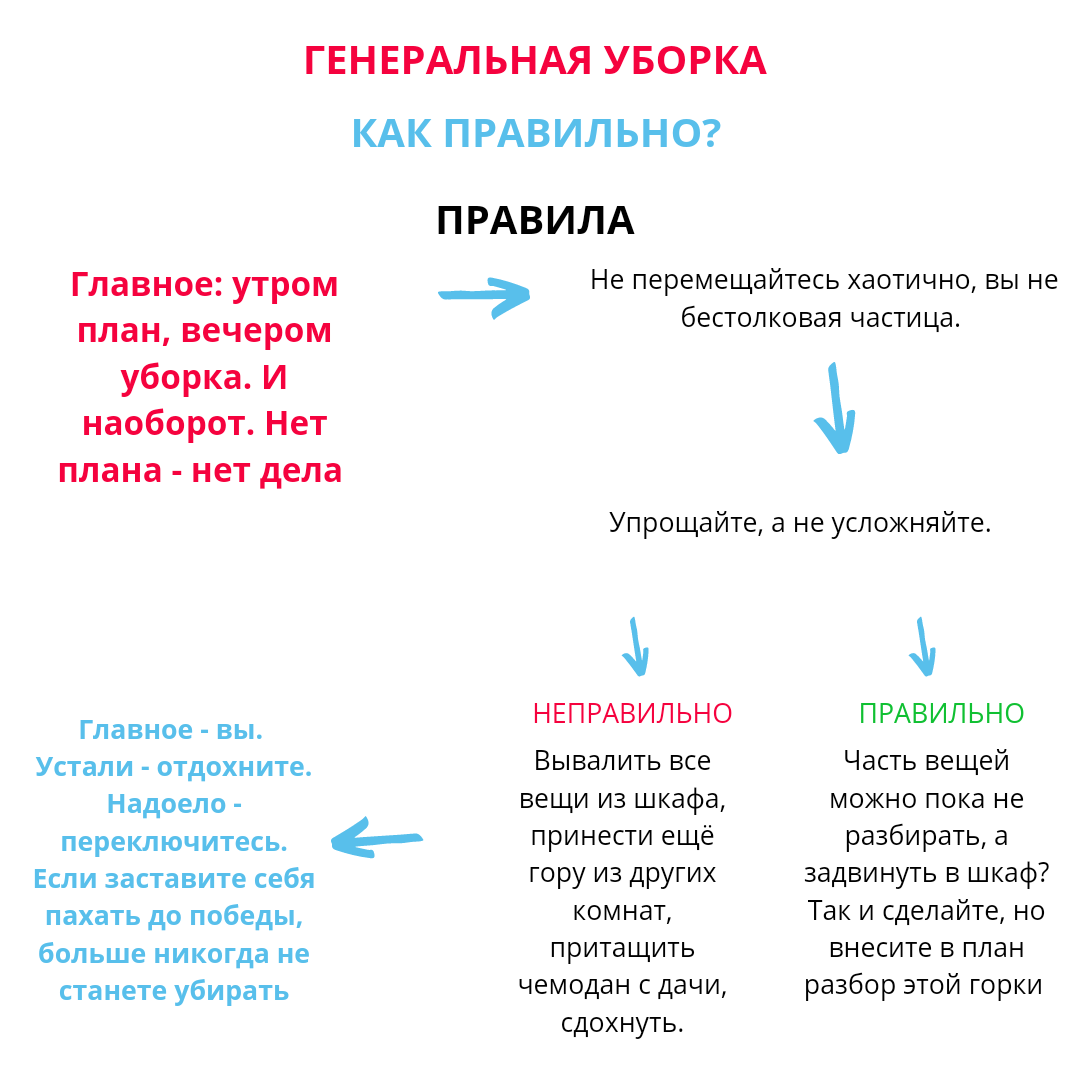 Во-вторых, есть общие правила. Важно напоминать их себе сразу, как только вы решите запланировать генеральную уборку.