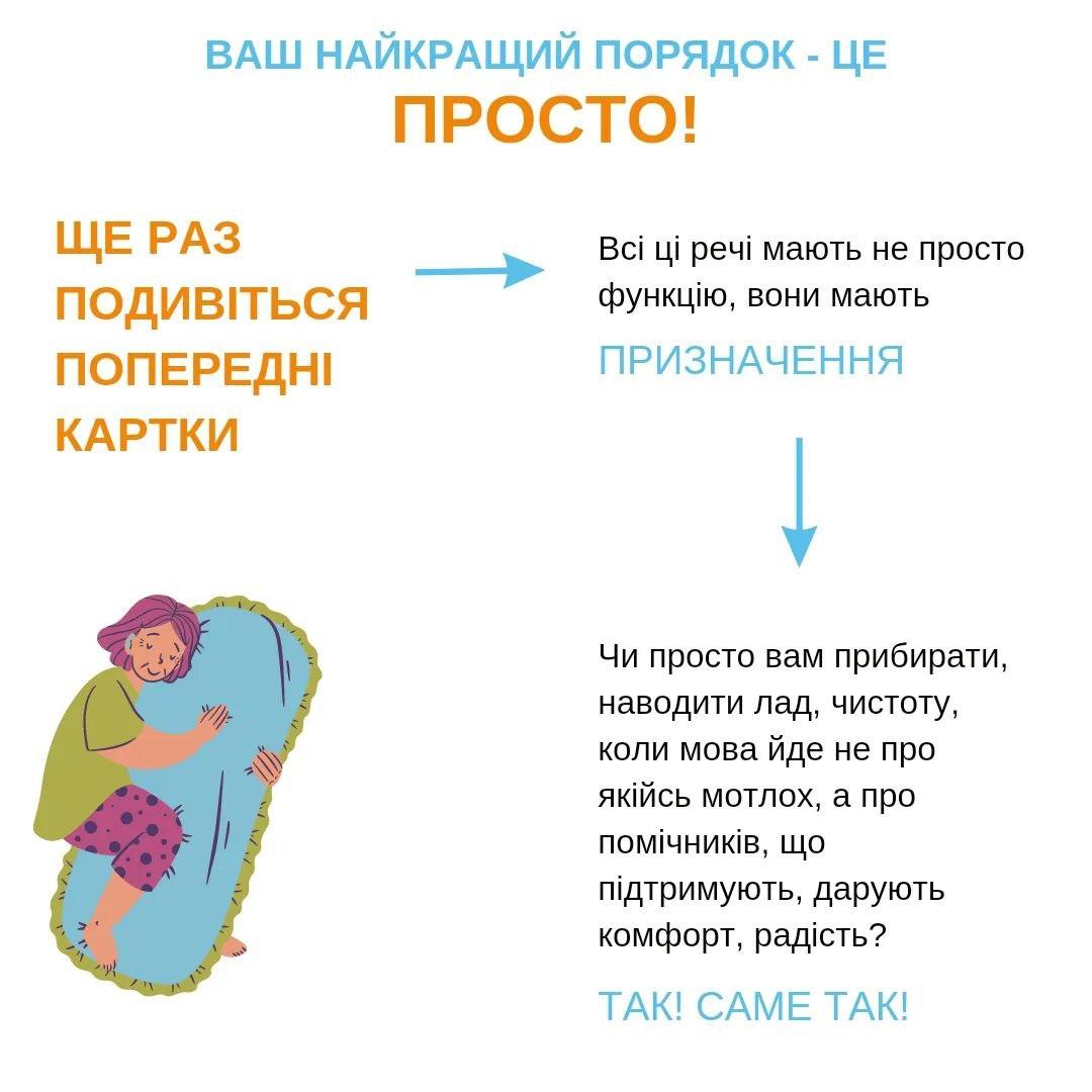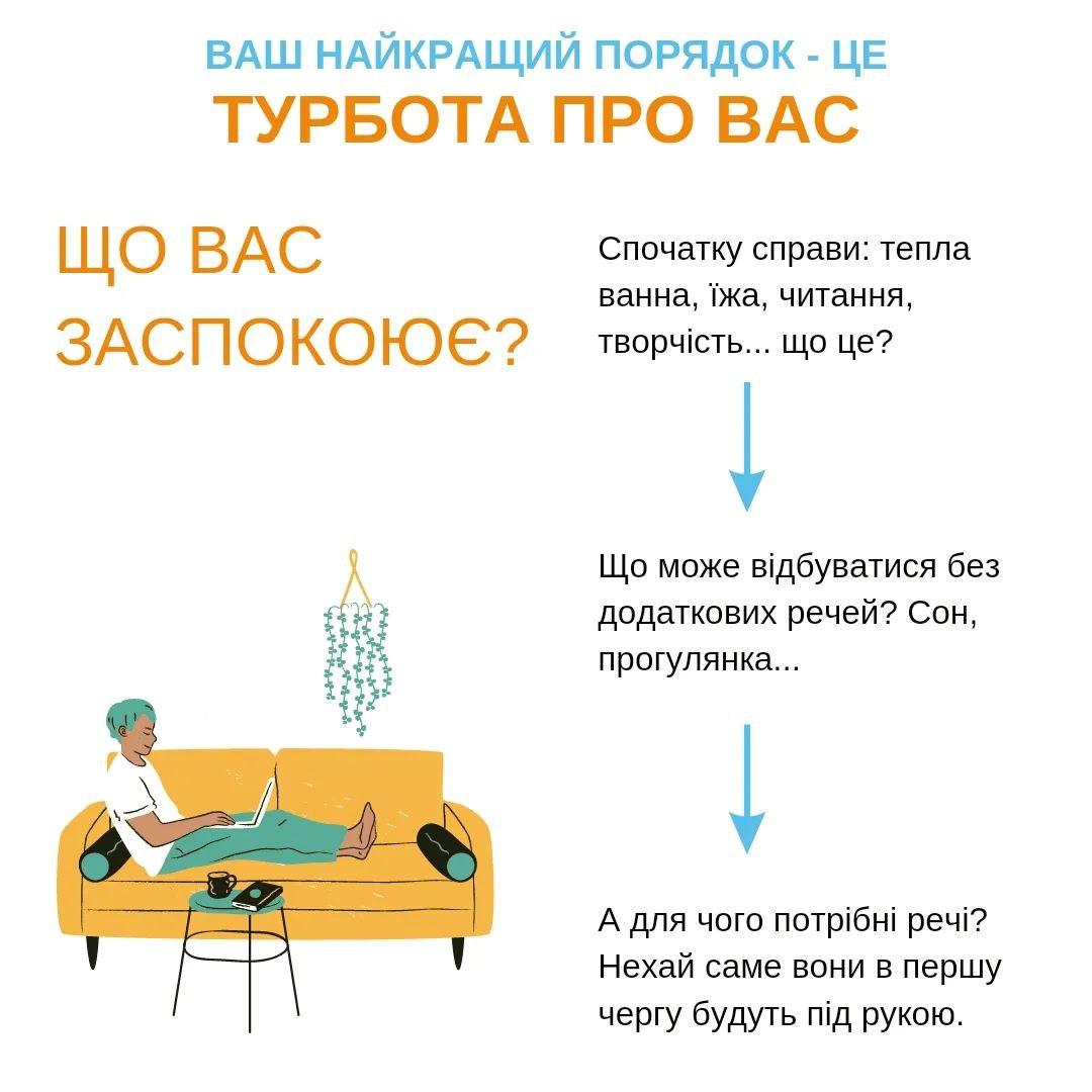 Ми думаємо про порядок не для того, щоб навалити на себе якусь нову проблему та каторгу. Не для того, щоб “відволіктися”. Не для того, щоб бути, як “настоящща женщіна”, яка “має прибирати та тримати домашній очаг”.