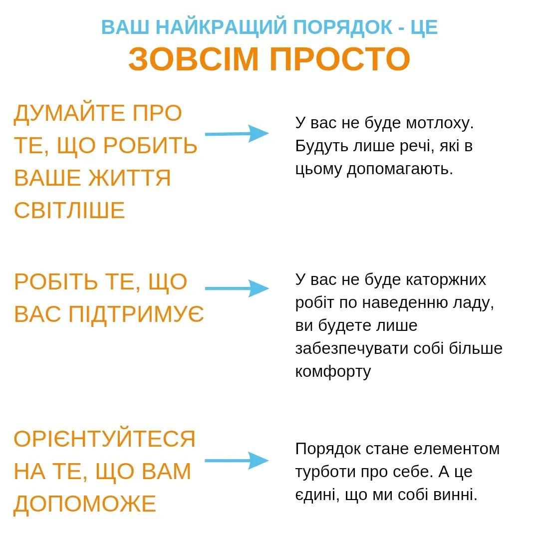 Порядок може бути гнучким, простим та ефективним. Як приємно повернути собі контроль над своїм домом, коли розумієш це!
