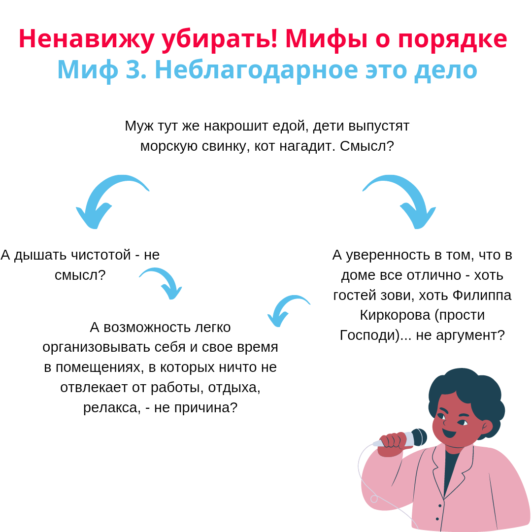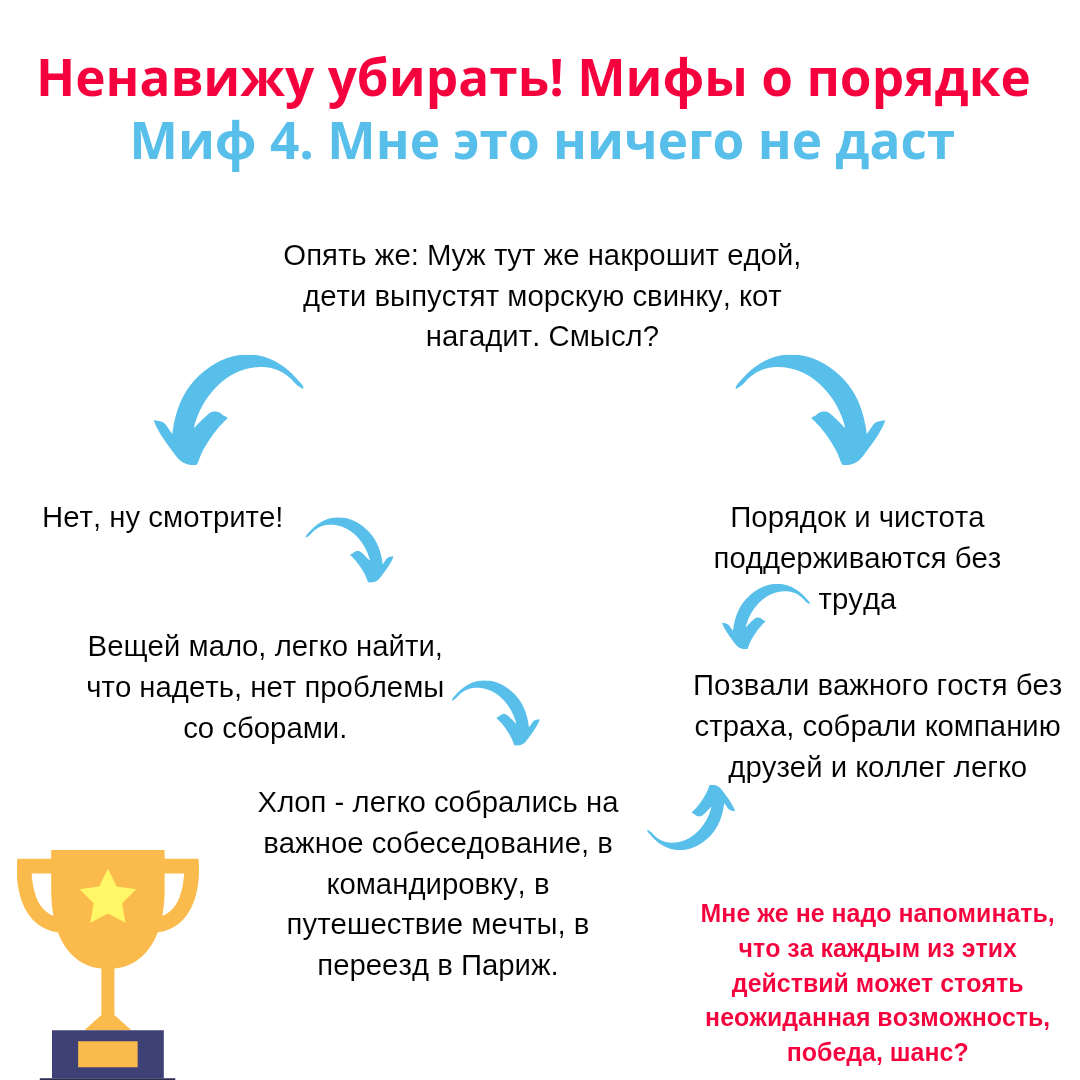 С мифами все понятно, но проще не стало? Тогда просто нужна инструкция, что делать! Даже если у вас есть все пара минут... Да что там, даже если есть пара секунд, вы можете навести порядок в доме и сделать свою жизнь удобнее и комфортнее.