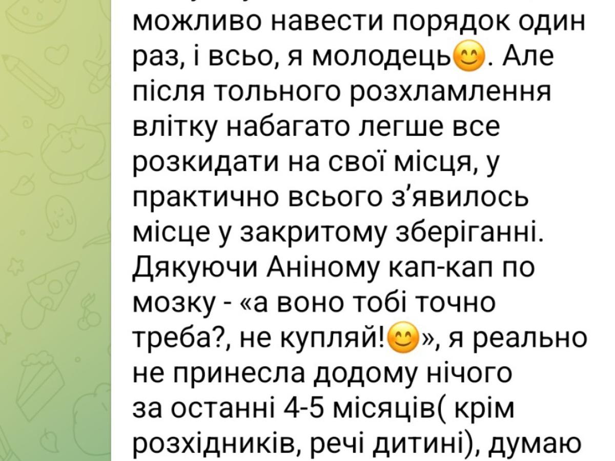 Але якщо вам потрібна саме система, яка дає не уривчасті, а послідовні дії, тільки актуальні задачі: те, що варто робити сьогодні, а не "усе, що спало на думку", то це, звісно, наша спільнота "Порядний дім". Вона працює, як клуб по підписці, і ви можете залишатися там, скільки зручно та потрібно саме вам.