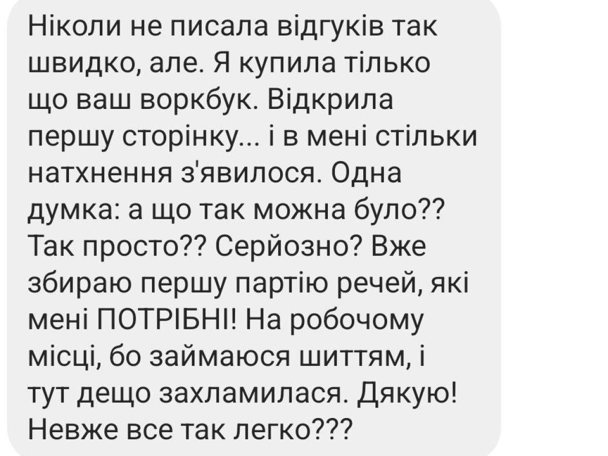 Ось, що написала читачка через 30 хвилин після покупки воркбуку:
