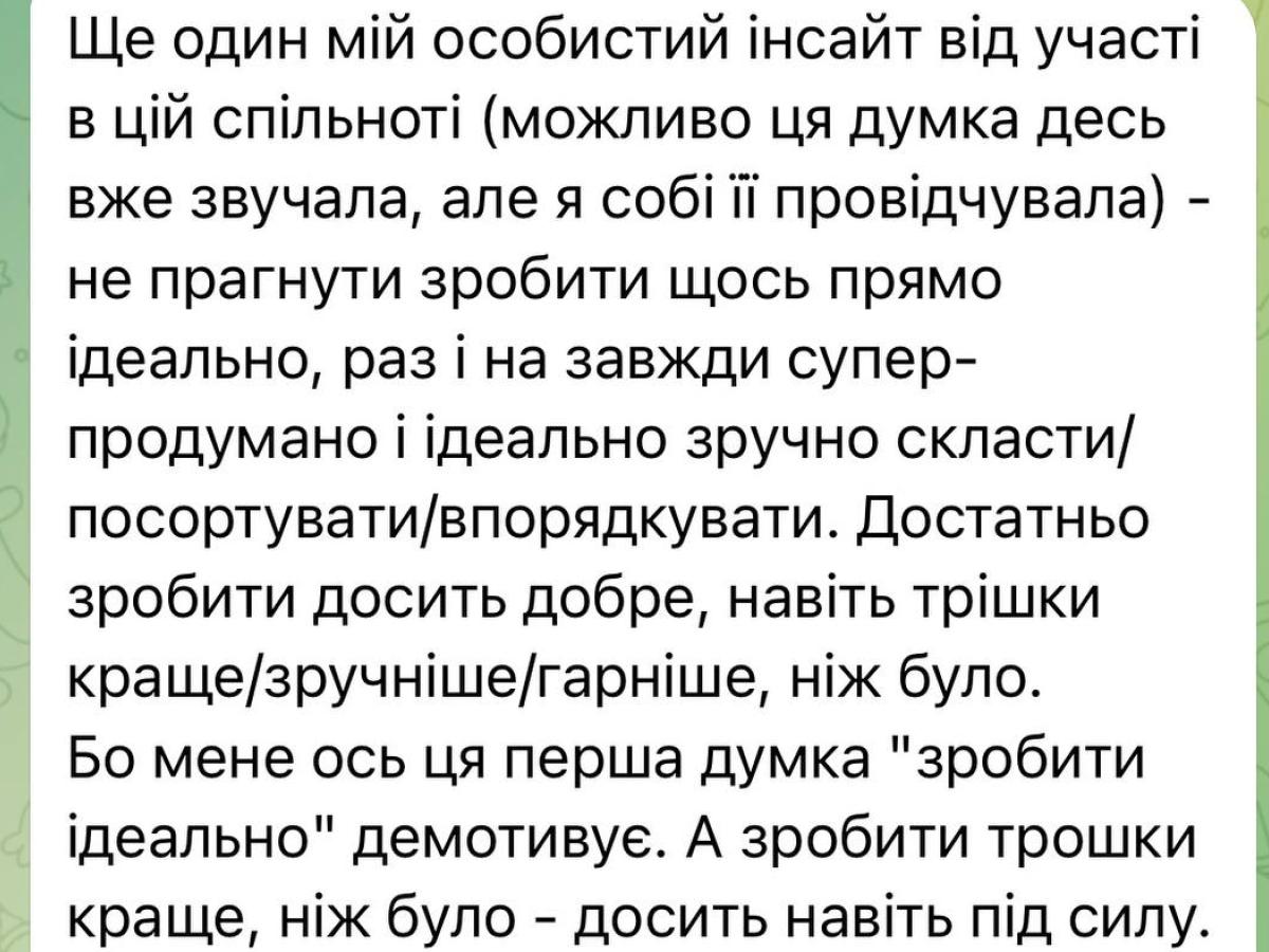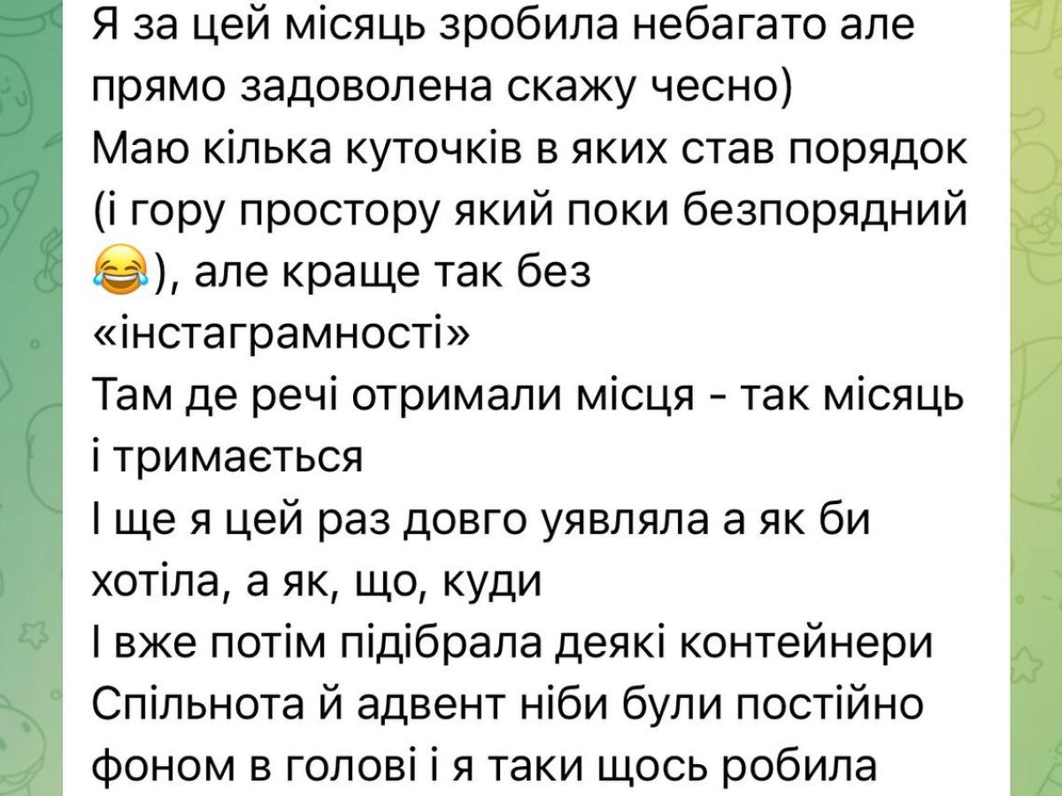 - 1 день = 1 маленька дія по дому + 1 маленька дія порядку в голові.